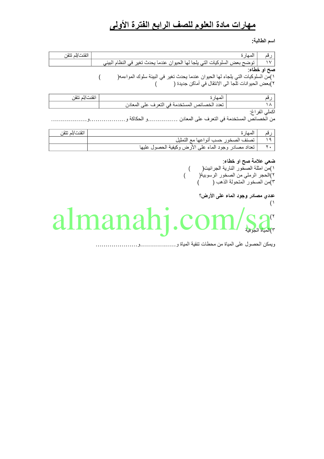 مهارات العلوم الصف الرابع الابتدائي الفصل الاول 1440 هـ 2019 م المدرسة السعودية