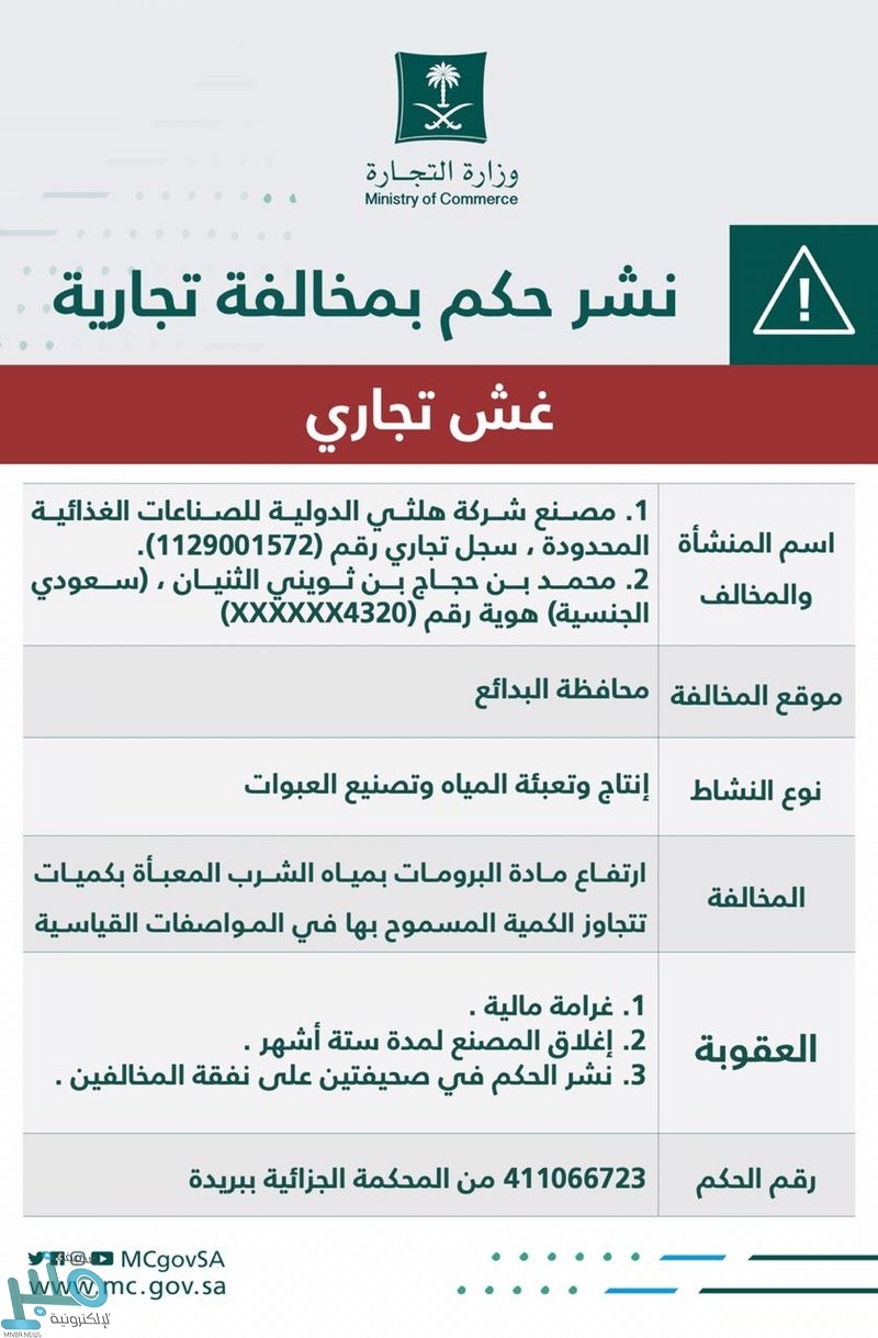 التجارة تشهر بمصنع لمياه الشرب في بريدة صحيفة منبر الإلكترونية