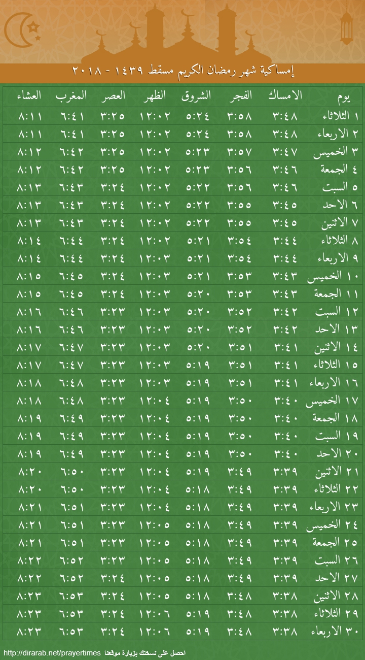 امساكية رمضان 2018 مسقط عمان 1439 Ramadan Imsakiye Oman Muscat